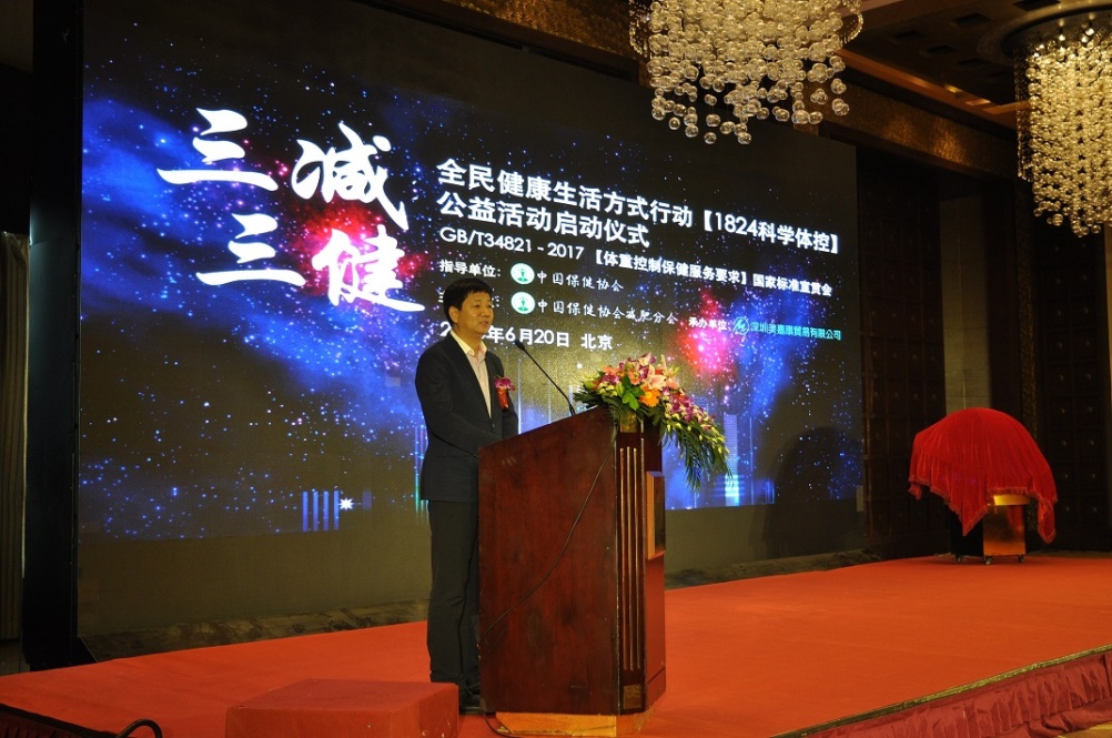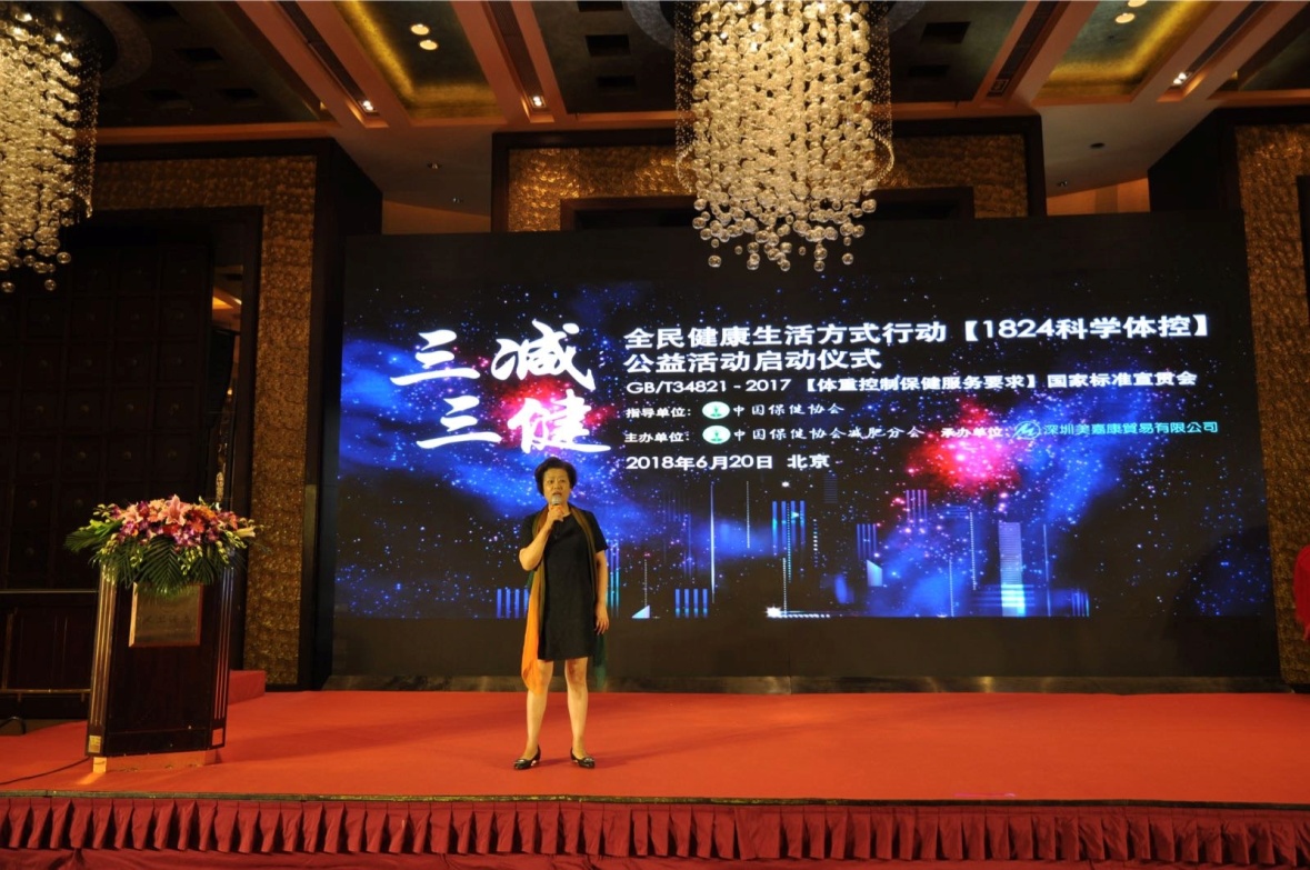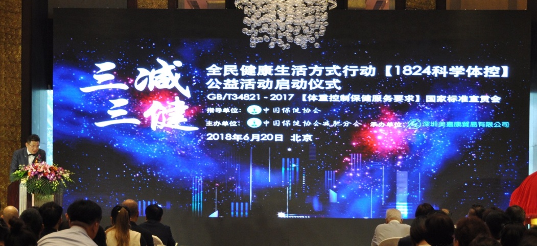 為積極響應(yīng)國家衛(wèi)計委、體育總局、全國總工會、共青團(tuán)中央和全國婦聯(lián)共同制定的《全民健康生活方式行動總方案(2017-2025)》精神的總目標(biāo),宣傳“減鹽、減油、減糖”的健康理念,提高全民 “健康的口腔、健康的體重、健康的骨骼”的保健知識,以達(dá)到提高人民群眾健康生活水平的目的,同時為配合《體重控制保健服務(wù)要求》國家標(biāo)準(zhǔn)正式實施。中國保健協(xié)會減肥分會與深圳美嘉康貿(mào)易有限公司于2018年6月20日成功舉行了“‘三減三建’全民健康生活方式行動1824科學(xué)體控公益活動啟動暨GB/T 34821-2017 《體重控制保健服務(wù)要求》國家標(biāo)準(zhǔn)宣貫會”。